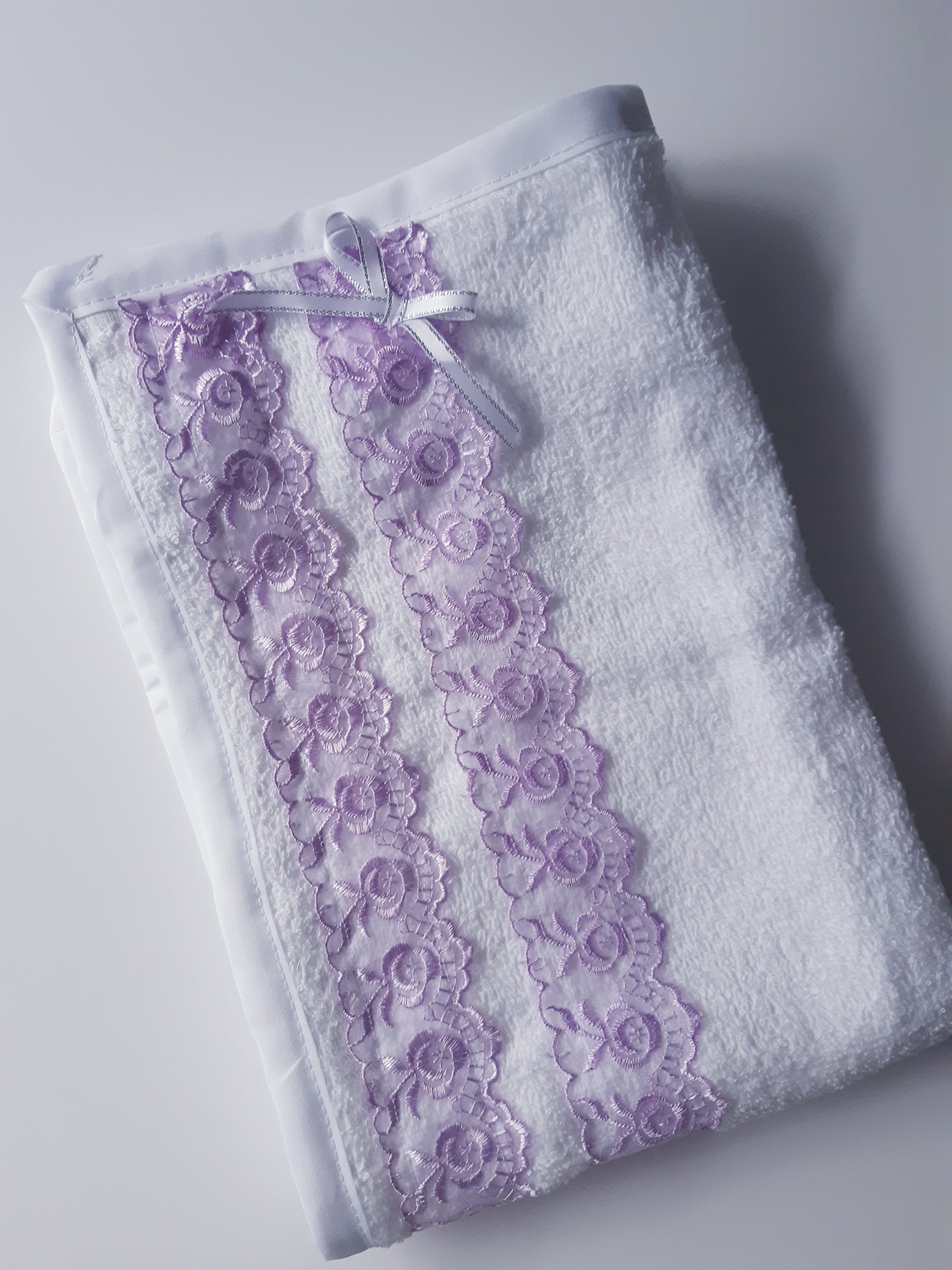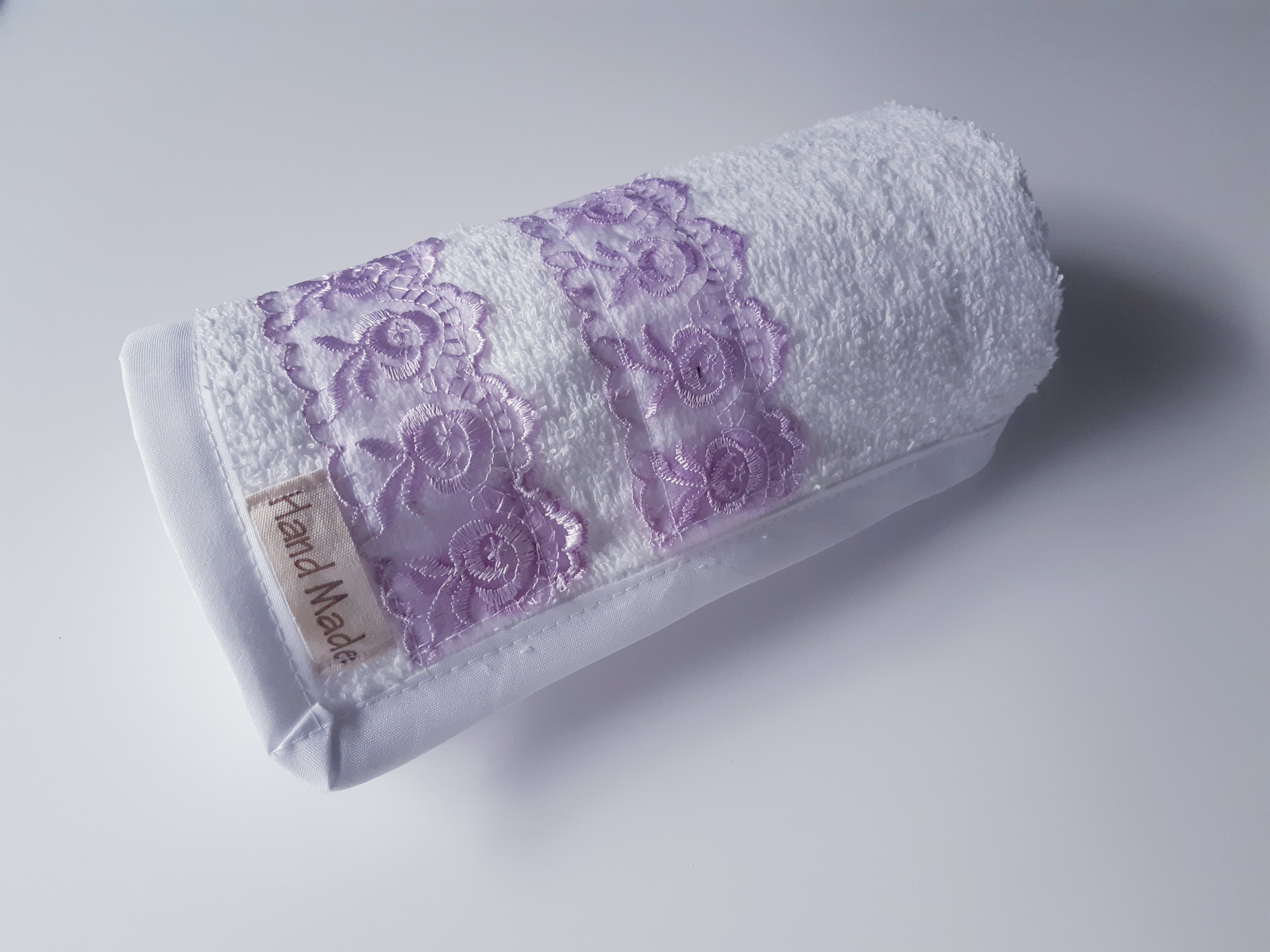 60cm x 60cm hand made baby burp cloth with lilac lace