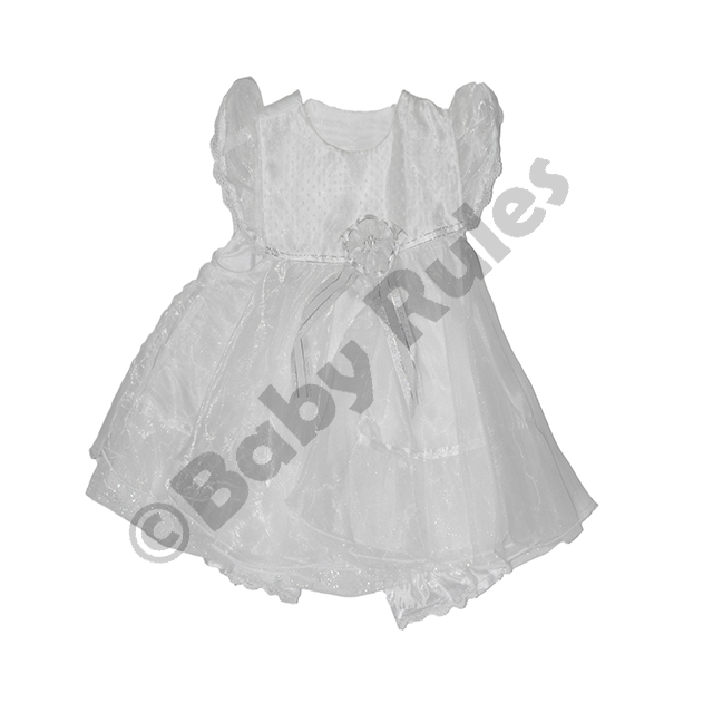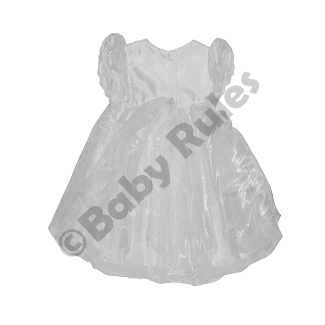 Girls Summer Christening Dress – White pantaloon set with satin and chiffon overlay, glitter top